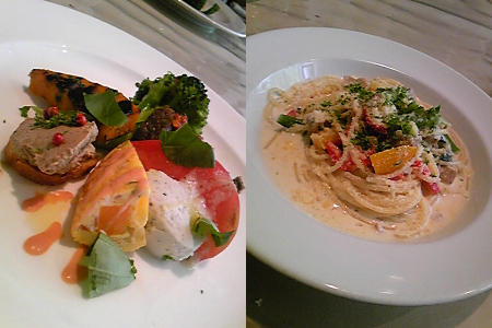 そして何が凄いかって、毎回前菜、パスタ、デザートの種類が違うという。もしかしたら同じパスタ食べたことあるかもしれないけど、とにかくいつも違う。そしてパスタはトマト、オイル、クリームから選べます。ちなみに今日は鶏とパプリカと小松菜のクリームパスタ。ここは本当に彩りも綺麗、チーズとパセリのかかり具合もまたたっぷり。そして多分アルデンテ。パスタの硬さがまた絶妙なのである。前菜の手の凝りようがハンパない。そこらのコース料理にも引けをとらんと思うのよね。毎回予約してから食べに行ってます。今日もうまかった!!ごっそさん!!