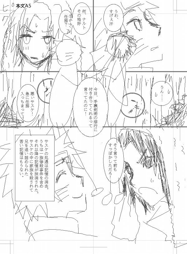 漫画でいうと背景無しって状態ですが、サスとナルが書ければいっかなです。