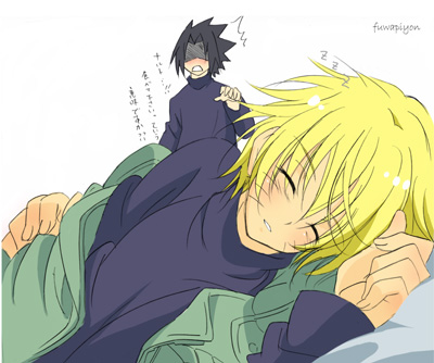 ピヨンさんにはちゃんとご許可を頂いてますよー。おどるちぇ設定な二人を描いて下さいましたv相変わらずサスケ→ナルトなので、後ろで身悶えてるサスケさんとかありがとうございますです♪こんな二人のようなラブコメで書いていきたいと思いますー。